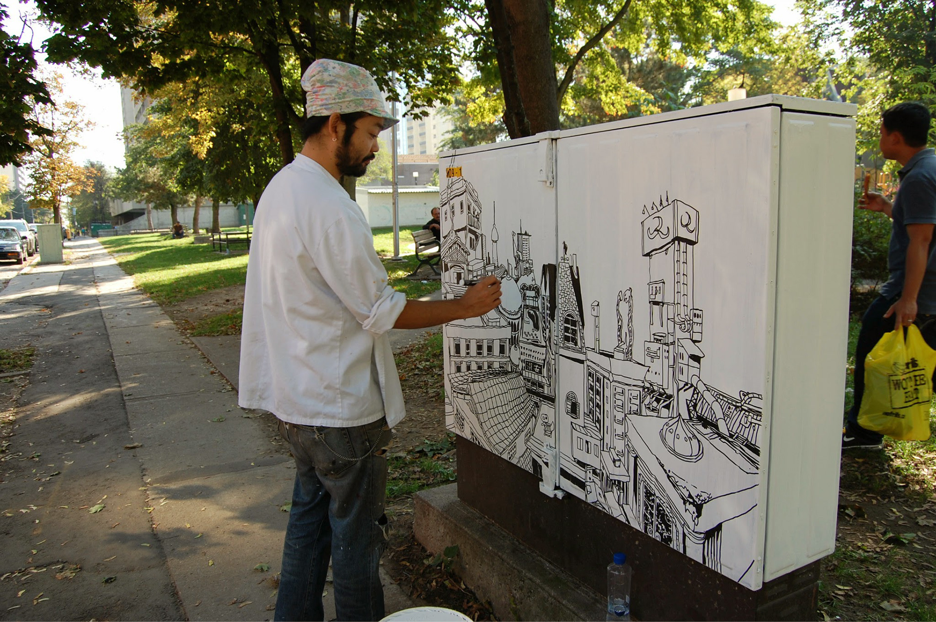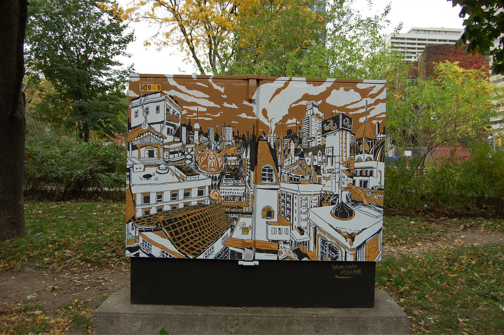 今回は、トロントの人々や文化をテーマに、建物の形を通して、自身の記憶や想像をもとに表現した