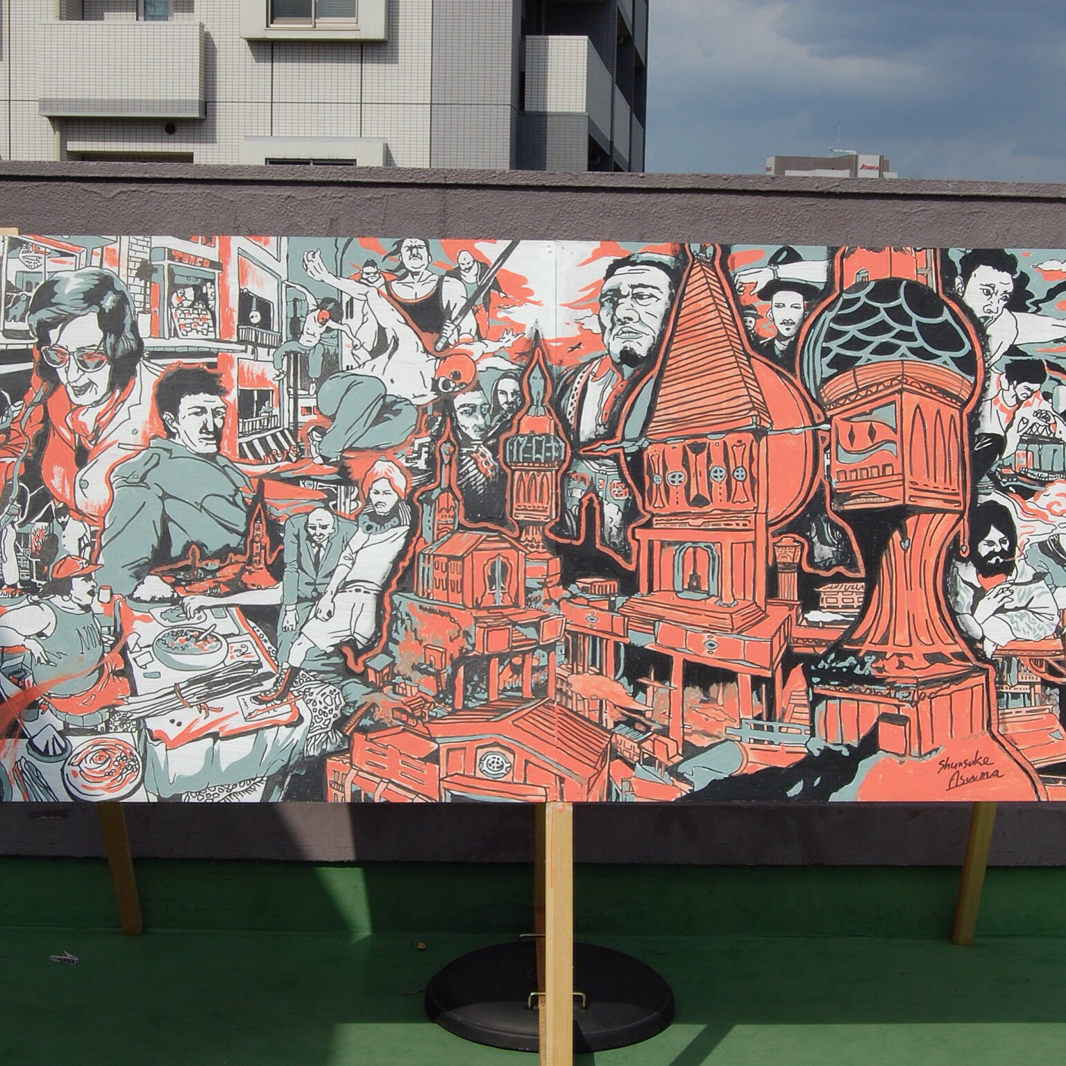 自身のスタジオのバルコニーにて、2日間にわたりドローイングを行いました。